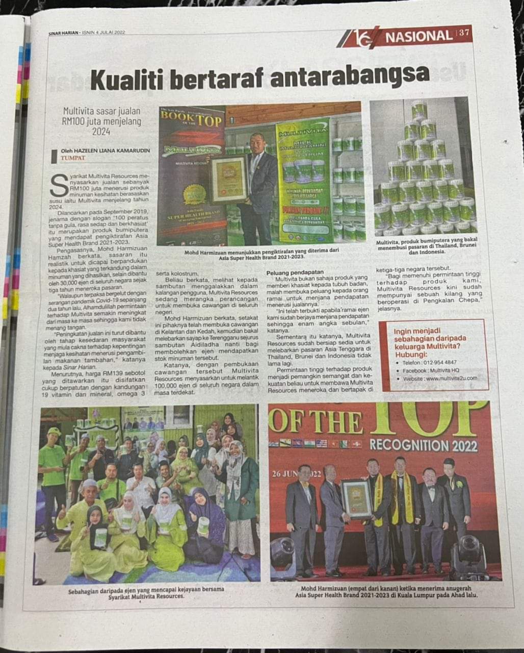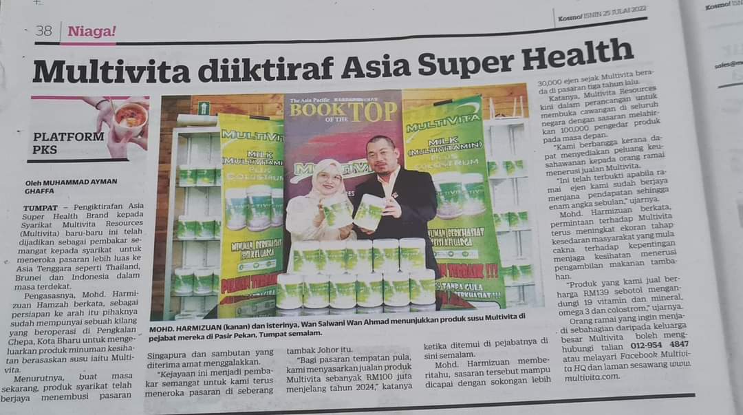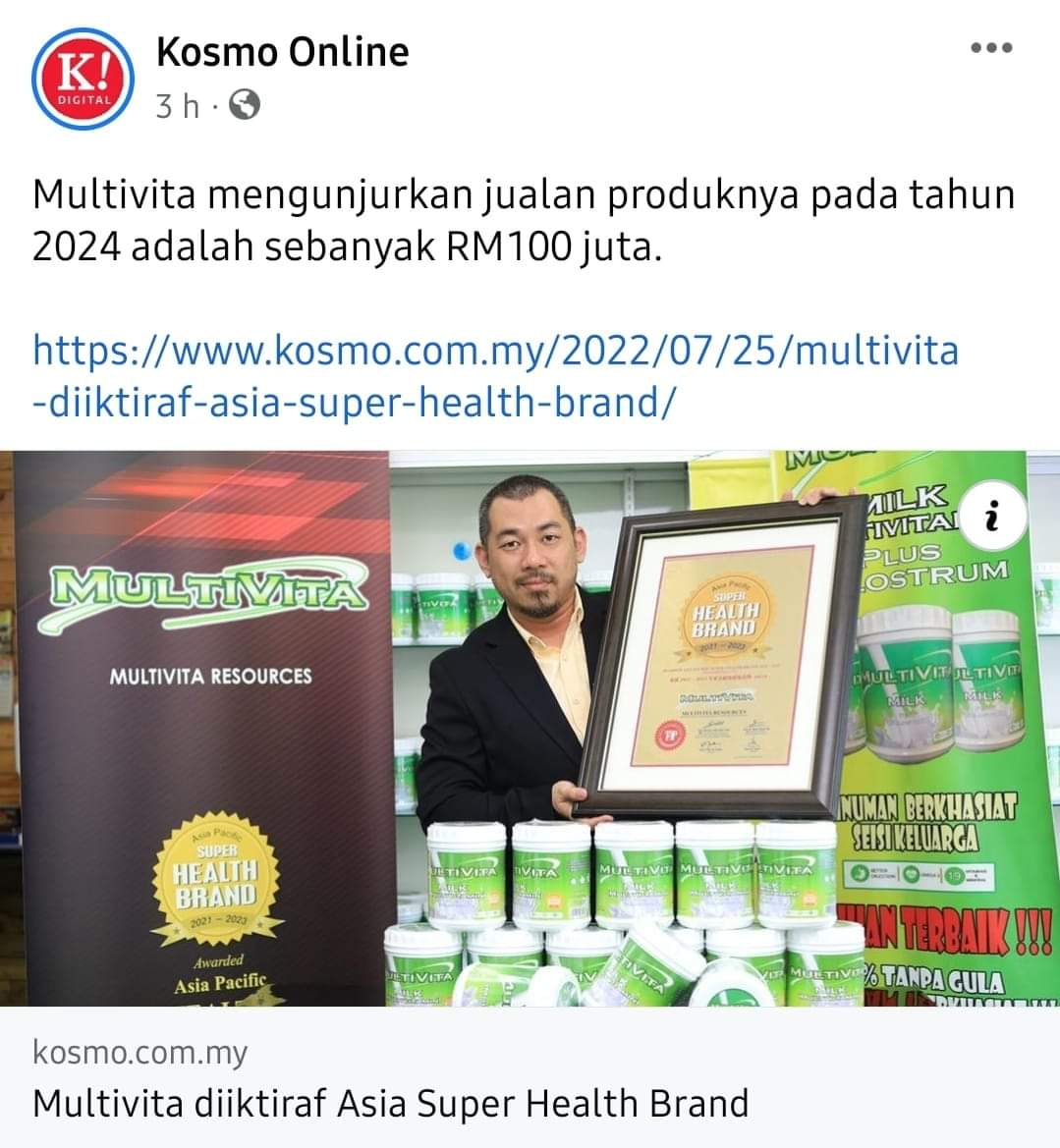 Sehingga kini Multivita Resources telah melahirkan 45,000 pengedar di seluruh negara termasuk Singapura dan Brunei . Bukan itu sahaja, Multivita Resources telah melakar nama dalam sejarah diiktiraf Asia Pacific Super Health Brand pada tahun 2021 sehingga 2023.
